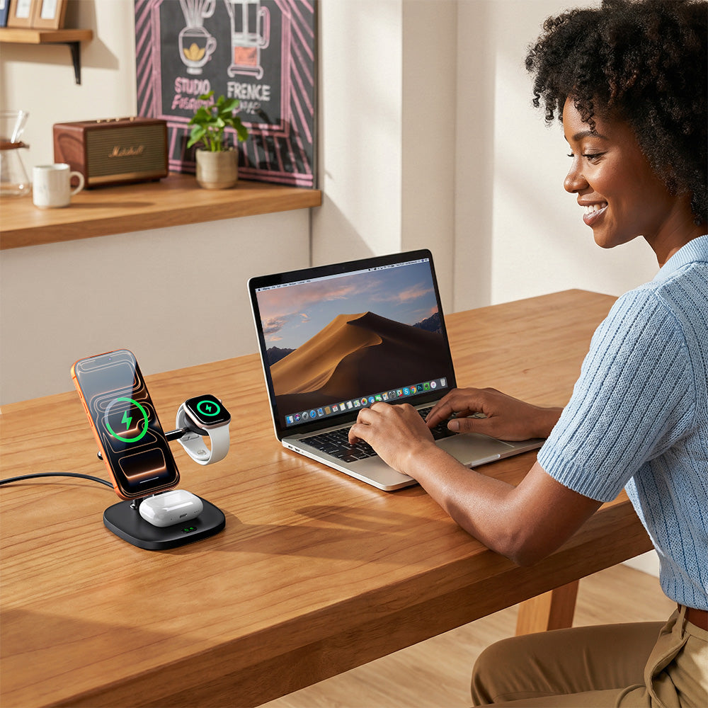 "È ben fatto e offre la possibilità di caricare contemporaneamente telefono, auricolari e orologio. La funzione orologio lo rende perfetto per il comodino: carica tutto durante la notte, pronto per l'uso in giornata. "