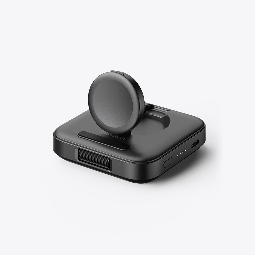 Ušetřete 20% SwanScout 303S 1800mAh portable power bank charging Samsung Galaxy Watch, compact charging stand for travelSwanScout 303S compact 1800mAh power bank for Samsung Watch with foldable stand for convenient travel charging