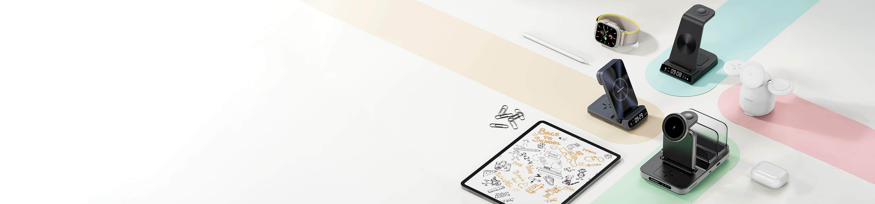 Schreibtische sind oft überfüllt, und mehrere Ladegeräte mit Kabeln verursachen nur noch mehr Unordnung und Stress. Die 3-in-1- und Dual-Ladegeräte von SwanScout bündeln all Ihre Geräte in einer sauberen, kompakten Lösung – für eine organisierte, effiziente und konzentrierte Lernumgebung.