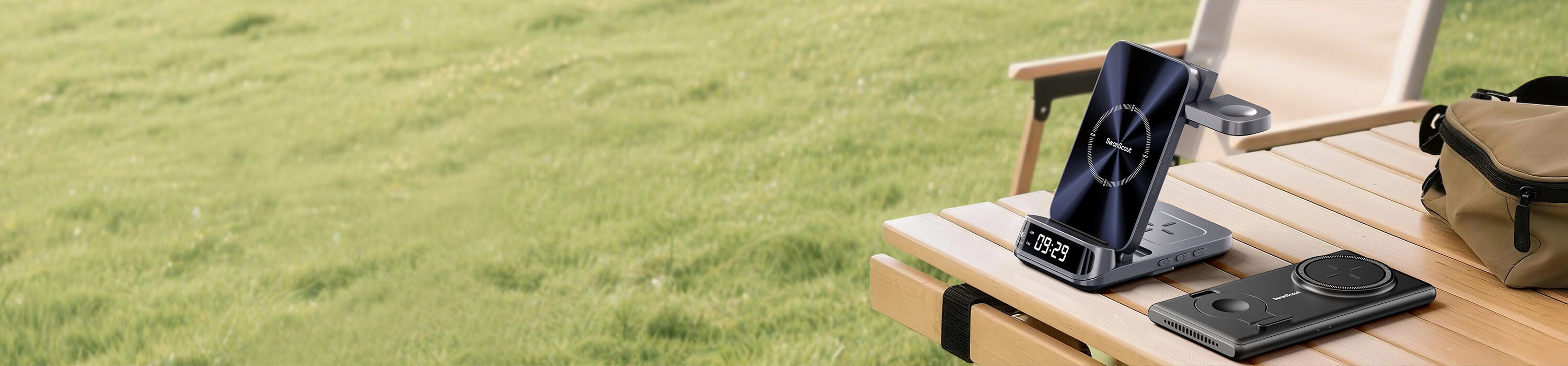 The SwanScout 705S is a streamlined Samsung charging station built for efficiency and elegance.Designed for versatility, the SwanScout 705S also functions as a dedicated Pixel charging station.