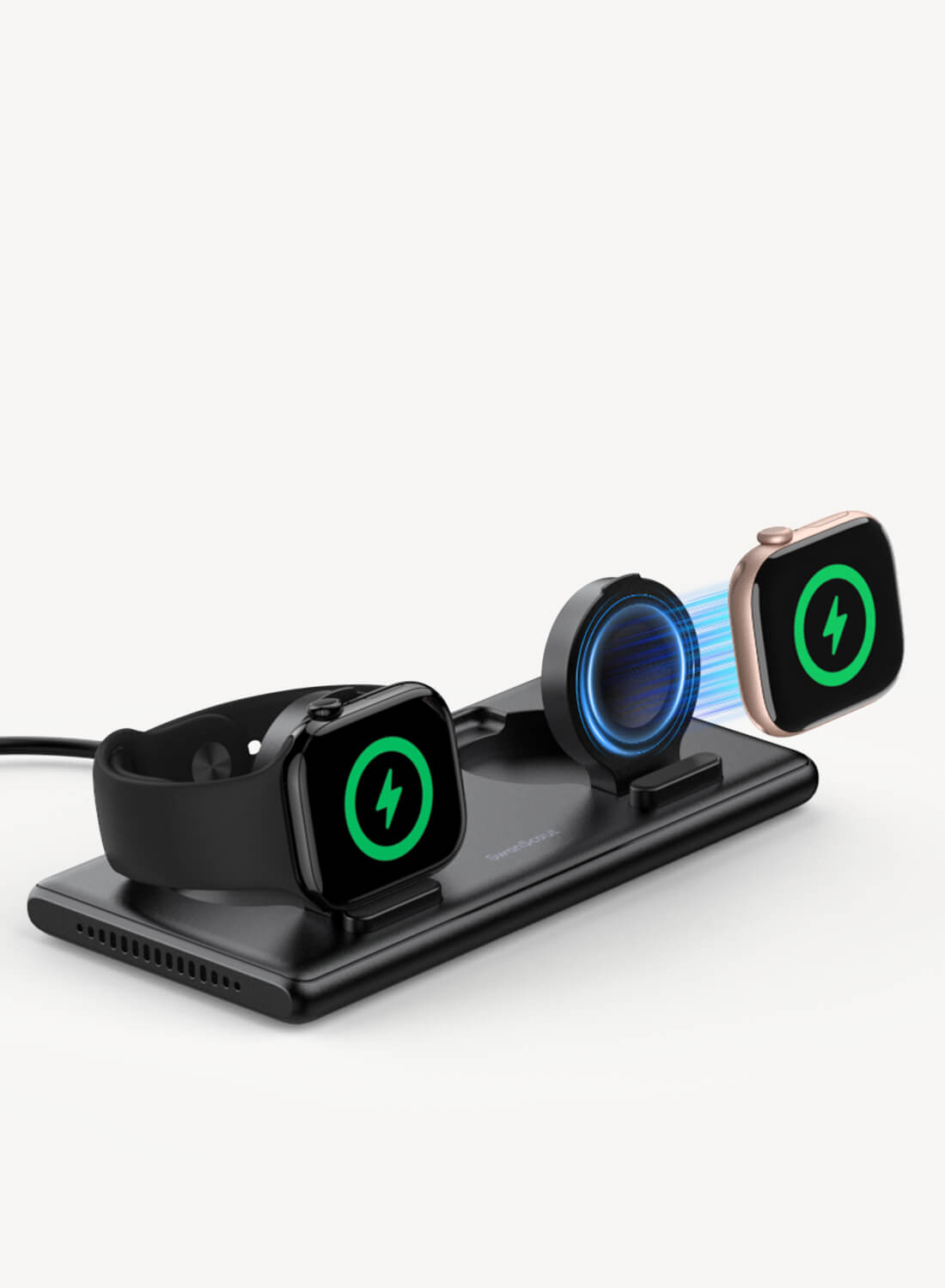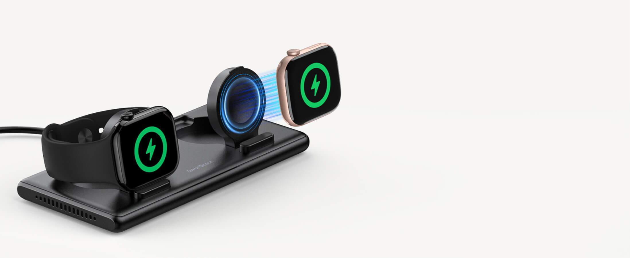Gardez votre table de nuit bien rangée tout en rechargeant deux montres – réveillez-vous avec des appareils entièrement chargés.