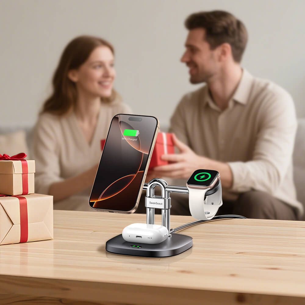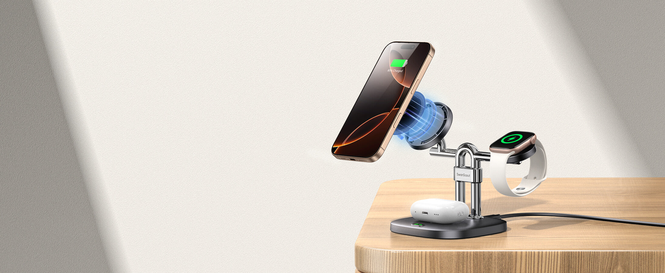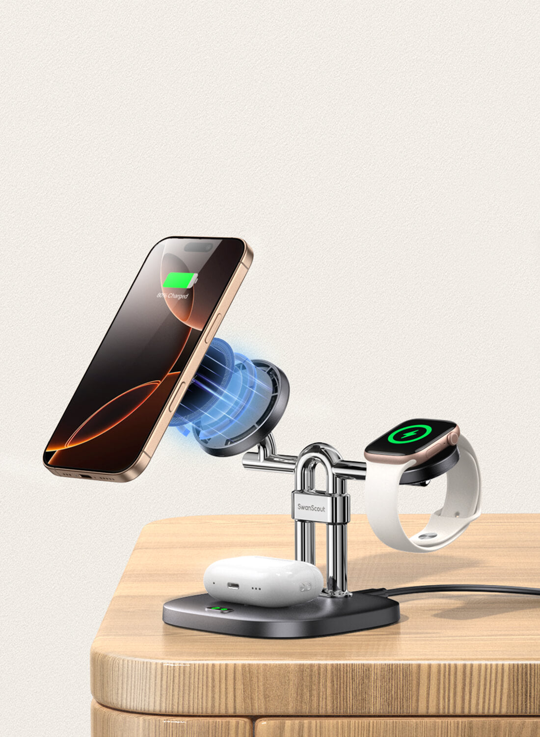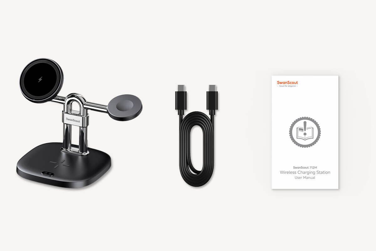SwanScout 712M – Station de Charge Sans Fil Magnétique 3 en 1 pour Apple