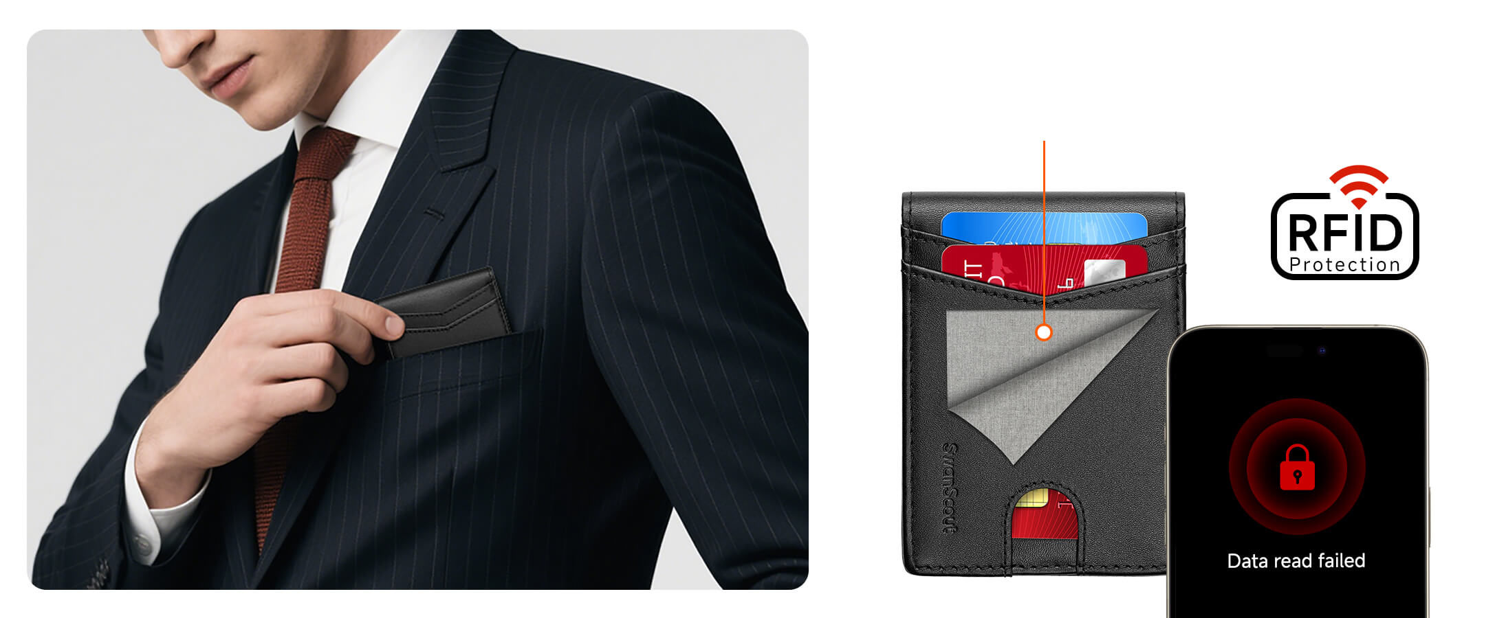 • RFIDブロックにより、カードの不正な電子スキャンから保護。