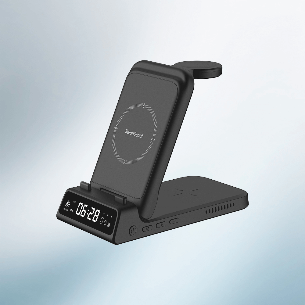 SwanScout은 삼성 사용자 맞춤형 무선 충전기를 다양하게 제공합니다. 개인용 3-in-1 소형 제품부터 가정용 듀얼 폰 및 듀얼 워치 모델까지 다양합니다. 개인 및 공유 환경에 맞게 설계된 이 충전기는 여러 기기를 동시에 충전할 수 있어 대기 시간을 최소화하고 효율성을 극대화합니다.
