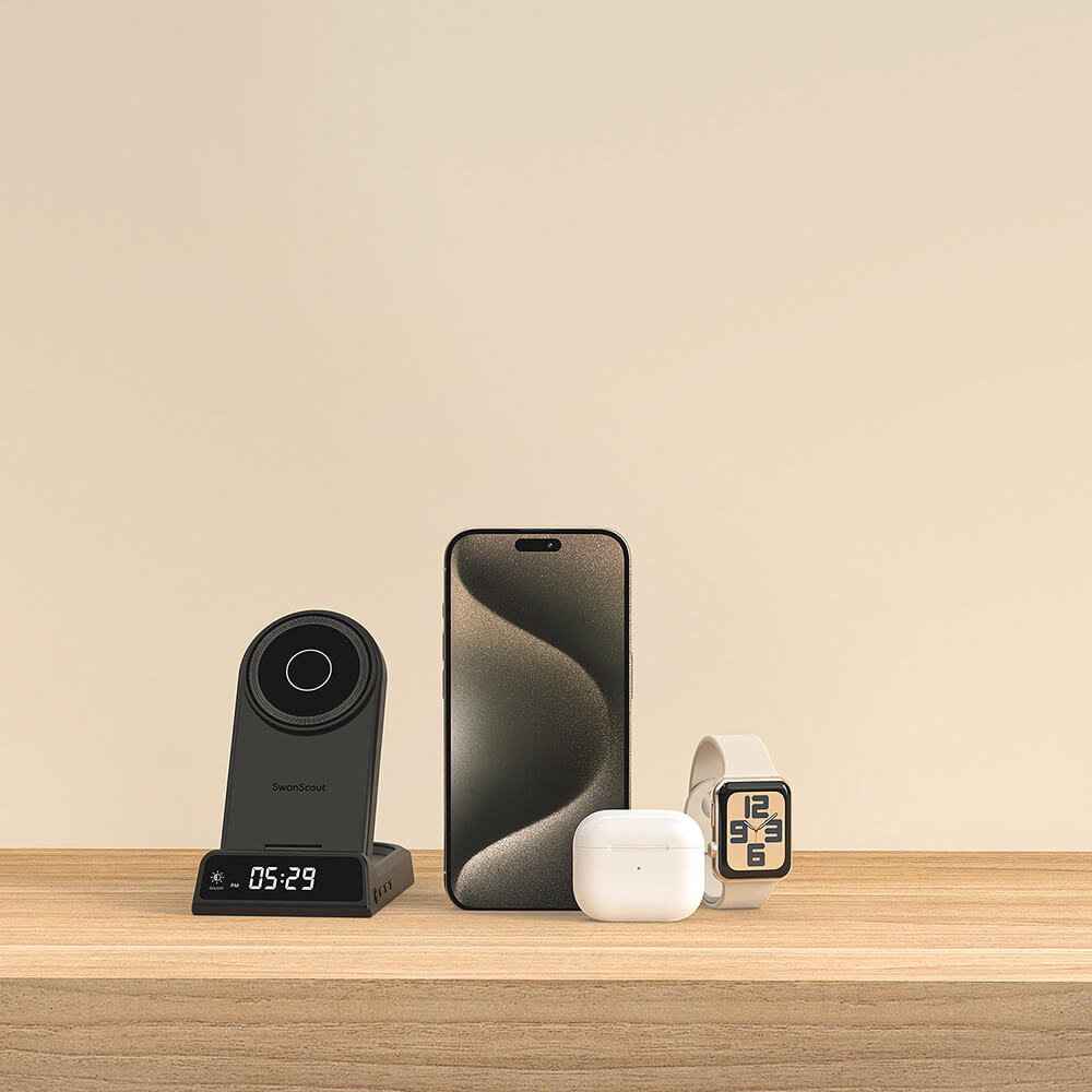 "È ben fatto e offre la possibilità di caricare contemporaneamente telefono, auricolari e orologio. La funzione orologio lo rende perfetto per il comodino: carica tutto durante la notte, pronto per l'uso in giornata. "