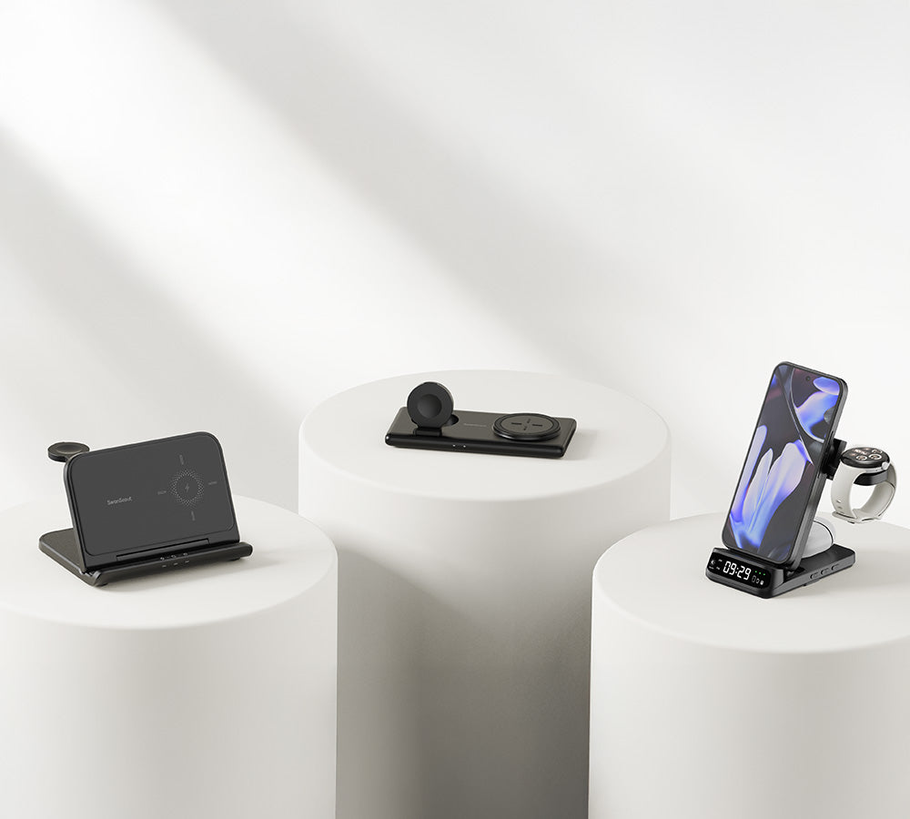 Estações de carregamento completas concebidas para telefones Google, Pixel Watch e auscultadores — energia otimizada para todos os dispositivos Google em que confia.