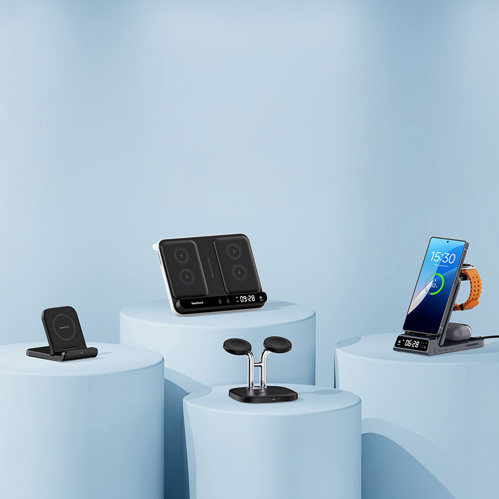 A SwanScout oferece uma variedade de carregadores sem fios personalizados para utilizadores Samsung, desde unidades compactas 3 em 1 para uso individual até modelos com dois telefones e dois relógios para uso doméstico. Concebidos para ambientes pessoais e partilhados, estes carregadores permitem o carregamento simultâneo de vários dispositivos, minimizando os tempos de espera e maximizando a eficiência.