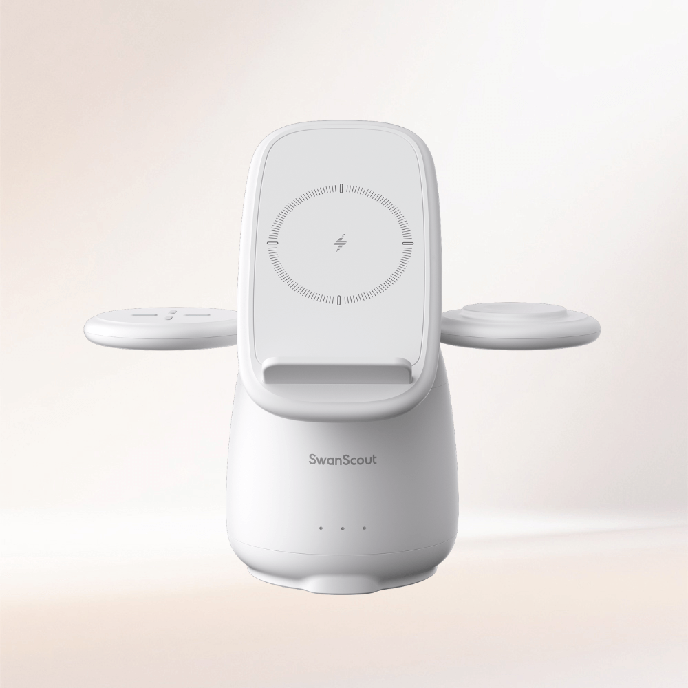 SwanScout 707S is a stable and elegant 3-in-1 wireless charger compatible with Samsung devices.The SwanScout 707S is a sleek Samsung wireless charging station built for daily efficiency and smart device organization.