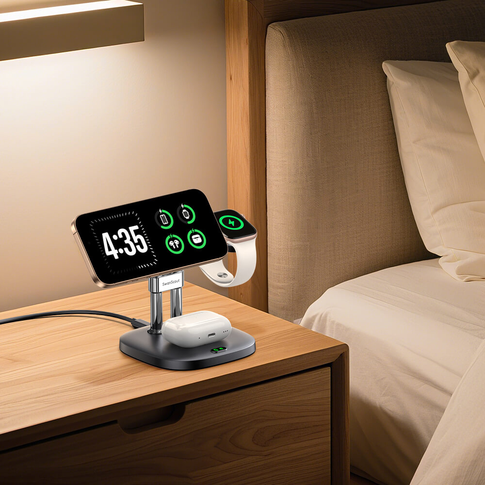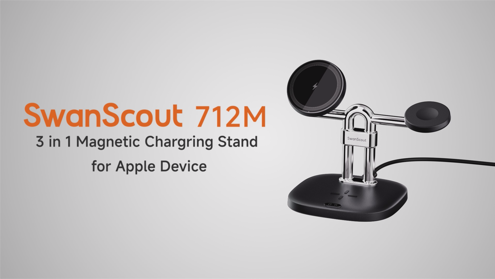 SwanScout 712M – Stație de Încărcare Wireless Magnetică 3 în 1 pentru Apple