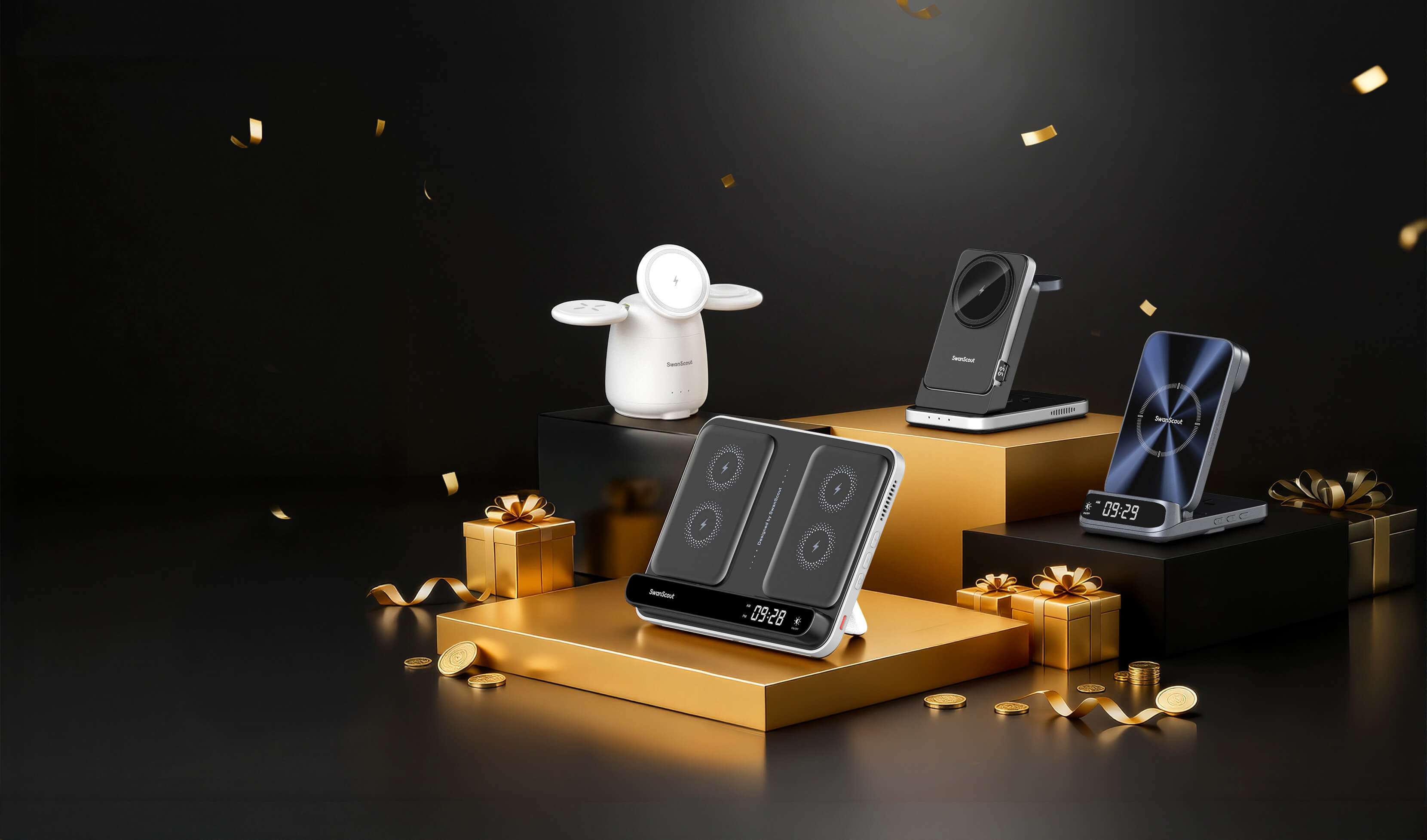 SwanScout 708S - 三合一三星无线充电器(带时钟显示)
