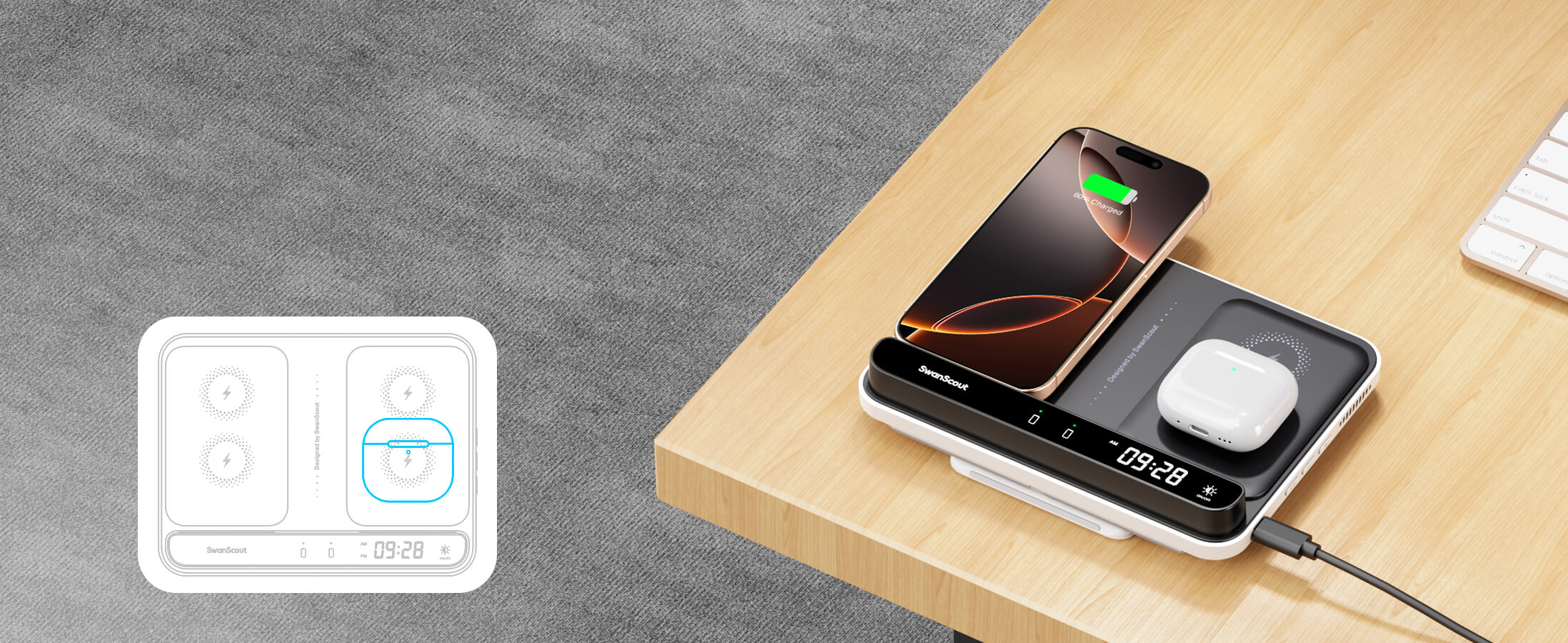 SwanScout 504 - 双手机无线充电器 促销价格€49,99 EUR