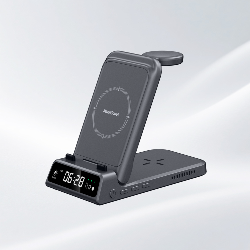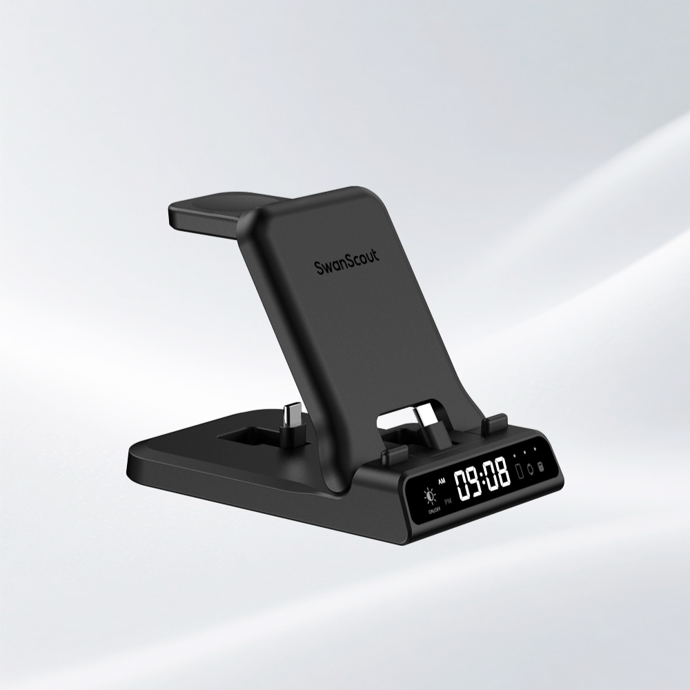 SwanScout 的時鐘無線充電器集快速磁力充電和清晰的數位時鐘於一體,設計優雅。無論您在書桌、床邊或學習區,都能為手機充電,讓您按時完成日程安排,同時保持整潔有序的空間。