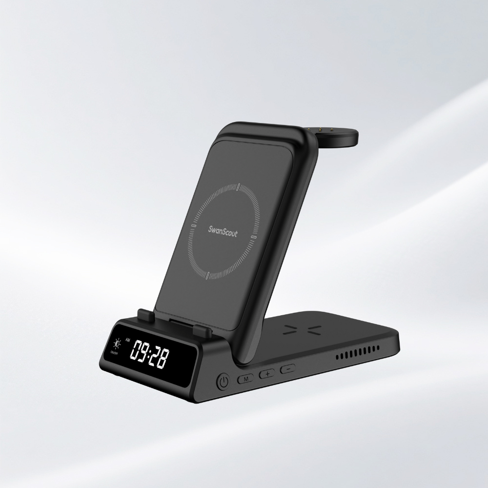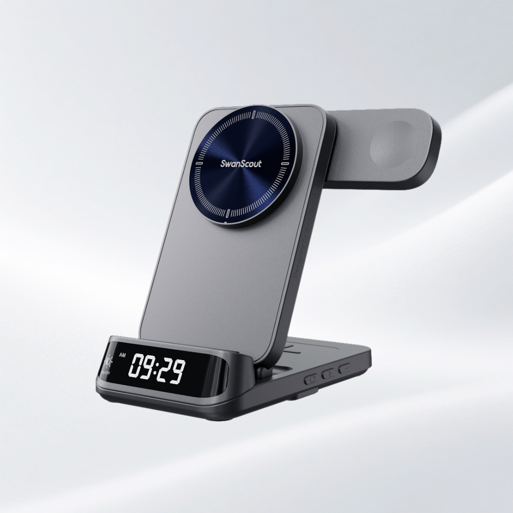 SwanScout 708M - 適用於 Apple 的 3 合 1 磁吸無線充電器(帶時鐘)